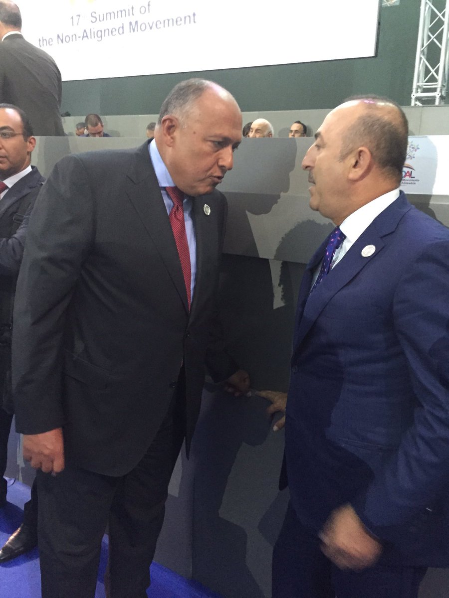 لأول مرة منذ الانقلاب العسكري في مصر عام 2013، التقى وزيرا خارجية مصر وتركيا، على هامش قمة عدم الانحياز في فنزويلا.