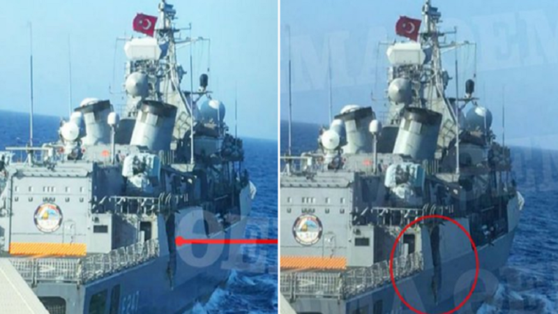 صور تظهر أضرارا لحقت بسفينة تركية إثر اصطدامها بفرقاطة يونانية