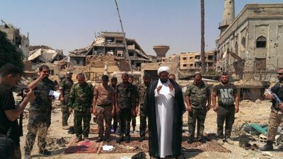 زار قائد لواء "الإمام الحسين" الشيعي في دمشق، أمجد البهادلي، مقام "السيدة سكينة" في مدينة داريا في الغوطة الغربية، عقب أقل من أسبوع على بدء اتفاق تفريغها من سكانها.