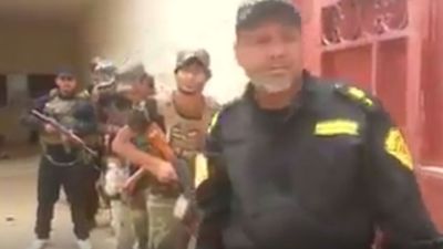 وقطع "الضابط" العراقي مع جنوده مسافة تقدر بـ25 ليدخل بيت غير مأهول دون أي مقاومة، ثم اعتلى السطح، ليمسك شخص لم يظهر وجهه، على أنه قناص من تنظيم الدولة.
