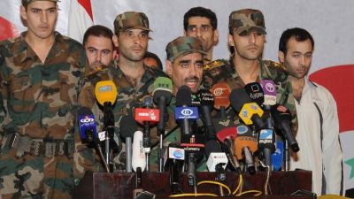 اعلن مقدم سوري مع مجموعة من العسكريين خلال مؤتمر صحافي في دمشق الاربعاء تخليه عن المعارضة المسلحة وعودته الى صفوف الجيش النظامي.