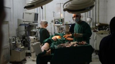 طبيب يجري عملية جراحية في مستشفى الرازي في حلب