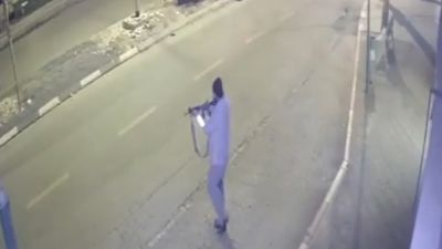 وأظهرت مقاطع مصورة وثقت العملية مسلحا ببندقية يطلق النار تجاه عناصر أمن إسرائيلية لحظة نزولهم من حافلة.