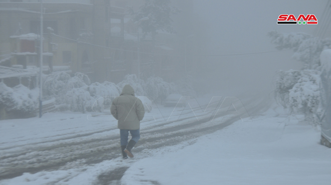 وفي سوريا بثت وكالة الأنباء "سانا" لقطات مصورة وصورا لتساقط الثلوج على دمشق، وعدة محافظات وقد غطت باللون الأبيض بشكل كثيف للغاية وخلت من المارة، وسط انعدام مظاهر الحياة، وتسبب المنخفض أيضا بإغلاق طرق وإلغاء امتحانات الطلاب، وأُبلغ طلاب الجامعات في العاصمة السورية دمشق ومحافظات أخرى بتأجيل امتحاناتهم بسبب الطقس السيئ.