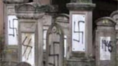 ووجدت رسوم للصلبان المعقوفة ورموز تشير إلي عبدة الشيطان مطلية على شهود المقابر سواء المسيحية أو اليهودية او الاسلامية في شرق فرنسا على مدار العام الماضي.
