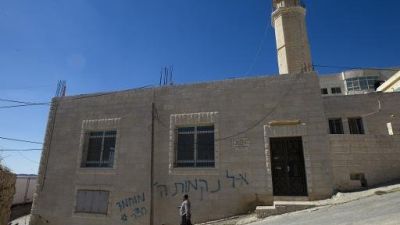 قام مستوطنون متطرفون بكتابة شعارات مسيئة للنبي محمد ورسم نجمة داود فجر الاثنين على جدران احد مساجد بلدة بيت اكسا شمال غرب مدينة القدس وحرق سيارتين لسكان البلدة بحسب ما افاد شهود ومصور وكالة فرانس برس .