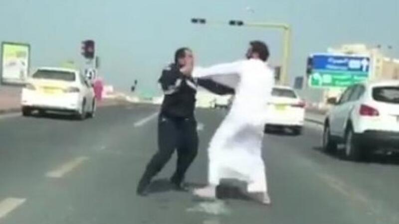 عراك بالأيدي بين مواطن كويتي وشرطي لدفاعه عن وافد آسيوي (فيديو)