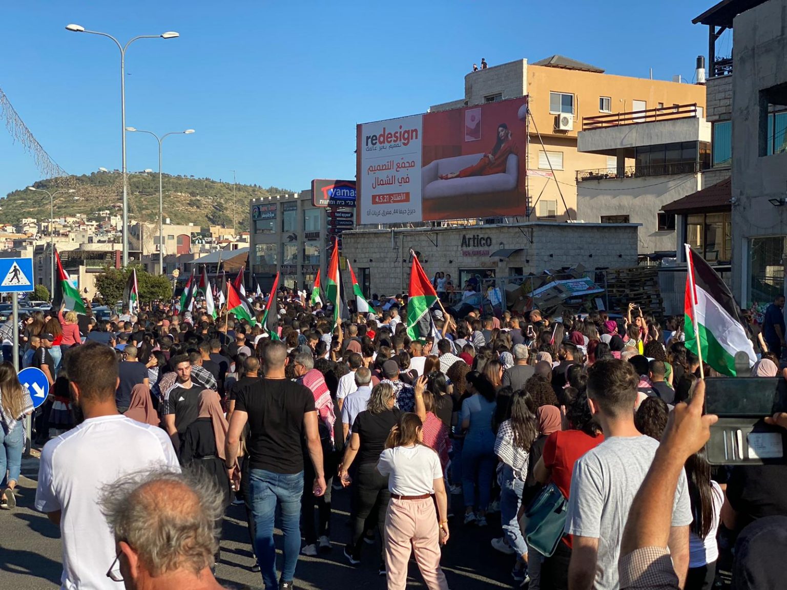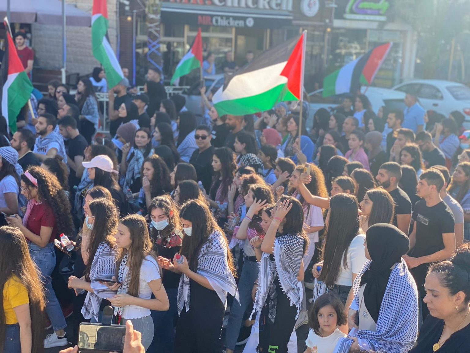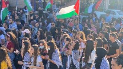 وهتف المتظاهرون ومن بينهم محمد بركة، رئيس لجنة المتابعة العليا في أراضي الـ48، “بالروح بالدم نفديك يا فلسطين”.