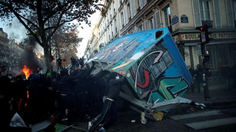 وقالت شرطة باريس في تغريدة عبر تويتر إن أعمال عنف اندلعت اليوم على هامش مسيرة بالقرب من ساحة الباستيل في باريس وتم إضرام النيران في بعض مواد “مواقع البناء”.