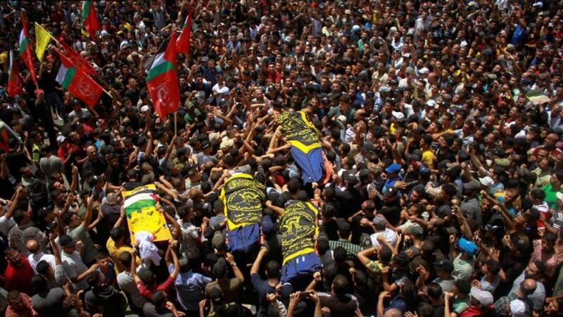 موكب تشييع جنازة القيادي في حركة الجهاد الإسلامي "خالد منصور، واثنين من رفاقه