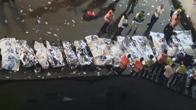 وقال رئيس منظمة الانقاذ زاكا اسرائيل الموجود في مكان الحادث "يدور الحديث عن عشرات القتلى . الحديث يدور عن كارثة لم تشهد البلاد مثلها . حان الوقت لمواصلة الصلاة من اجل شفاء المصابين وليس البحث عن المذنبين".