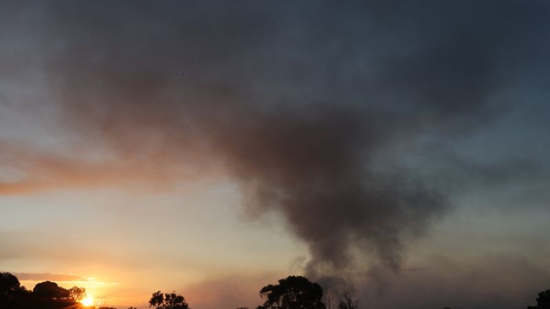 أعمدة الدخان الناتجة عن قصف إسرائيلي لقطاع غزة. 15 تشرين الثاني، 2023م. وكالة الصحافة الفرنسية