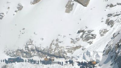 وقال مسؤولان إن العديد من القرويين تقطعت بهم السبل وسط الانهيارات الجليدية في منطقة وادي نيلوم بعد أمطار غزيرة تسببت أيضا في انهيارات أرضية.