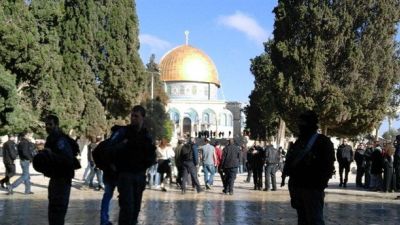 وقال شهود عيان أن 70 مستوطنا، و19 من أفراد حرس الحدود بسلاحهم "المسدسات" واثنين من المخابرات، اقتحموا الأقصى عبر باب المغاربة خلال فترة "الاقتحامات الصباحية"، وسط تكبيرات المصلين المتواجدين في الساحات، في حين تمنع شرطة الاحتلال مجموعة من النساء والرجال الدخول الى الأقصى للشهر السادس على التوالي، بعد ادراج اسمائهم ضمن قوائم اطلق عليها "القوائم السوداء" بحجة اثارة المشاكل في الأقصى.