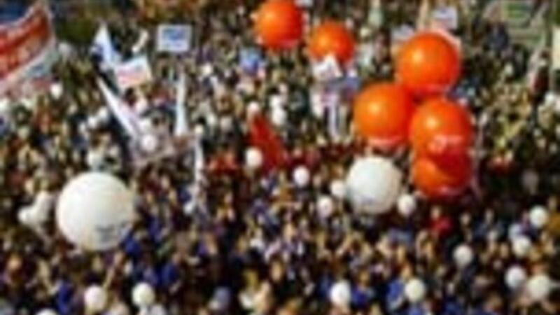 ولبى المتظاهرون دعوة "تحالف الغالبية" الذي يضم تشكيلات يسارية ومجموعات سلمية تدعم خطة الانسحاب من قطاع غزة والتي قررها رئيس الوزراء اليميني ارييل شارون.
