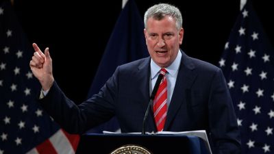 في رد استباقي على الإجراءات المثيرة للجدل التي وعد بها الرئيس المنتخب دونالد ترامب، ألقى عمدة نيويورك بيل ديبلاسيو خطابا قدم فيه وعود أخرى مناوئة لما تحدث بها ترامب.