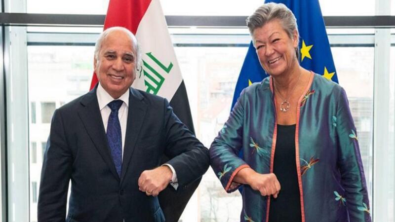 وقال بيان لوزارة الخارجية أن "وزير الخارجية العراقي، فؤاد حسين التقى على هامش زيارته إلى بروكسل المفوضة الأوروبية للشؤون الداخلية والهجرة، يلفا جوهانسون، وبحث معها العلاقات الثنائية بين العراق والاتحاد الأوروبي وسبل تعزيزها، لا سيما موضوع إعادة العراقيين العالقين على حدود الاتحاد الأوروبي بصورة طوعية".