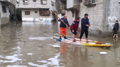 وأجلت طواقم الدفاع المدني عددا من المواطنين المحاصرين جراء غرق هذه المناطق بواسطة قوارب صغيرة، فيما لجأت طواقم الإسعاف في منطقة جباليا شمال قطاع غزة لإجلاء أحد المرضى بواسطة قارب صيد.