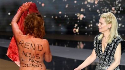 كورين ماسييرو ممثلة فرنسية في ال57 من العمر، صعدت على خشبة المسرح في حفل توزيع جوائز سيزارللسينما التي نُظمت في ال12 من مارس/آذار بباريس في دورتها ال46. وكانت الممثلة ترتدي جلد حمار مزيف وفستانا ملطخا بالدماء لتقديم جائزة أفضل زي، قبل أن تخلع ملابسها بالكامل.