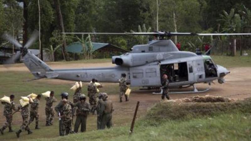 قال مسؤول عسكري يوم الاربعاء ان الجيش النيبالي على علم بفقدان طائرة هليكوبتر لمشاة البحرية الامريكية تقل ثمانية اشخاص وانها ربما سقطت في نهر في منطقة تشاريكوت التي دمرها الزلزال وان 400 جندي يشاركون في البحث عن الطائرة.