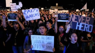 وانضم محتجون ممن خضعوا لمحاكمات في ظل الأحكام العرفية إبان عهد ماركوس إلى طلاب ونشطاء في المسيرات التي جرت في مانيلا للتعبير عن غضب مكتوم تجاه مراسم دفن عسكرية ظلت طي الكتمان حتى ساعات قليلة من إجراءها.