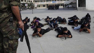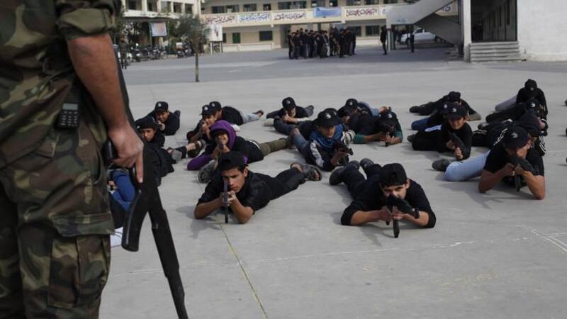 طلبة مدرسة في غزة يتلقون تدريبات عسكرية