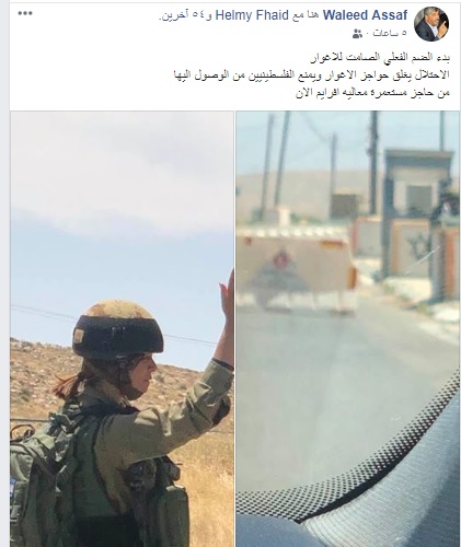 وقال ان الاحتلال يغلق حواجز الاغوار ويمنع الفلسطينيين من الوصول اليها