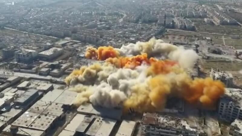 بث لواء "فرسان الحق"، و"الفرقة16" التابعين لـ"الجيش الحر"، تسجيلا مصورا يوثق لحظة تفجير مبنى معامل الدفاع في حي الخالدية بحلب.