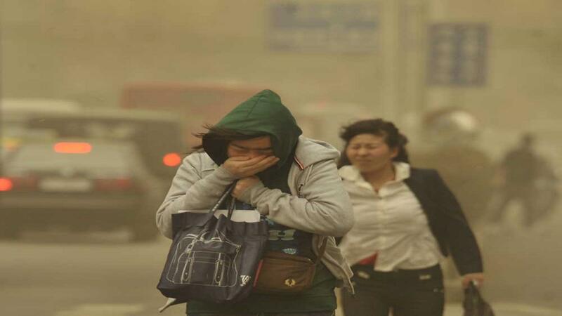 وفصل الربيع هو موسم العواصف الرملية في شمال الصين. وتحمل الرياح القوية معها الرمال والغبار الناعم من صحراء جوبي ومنغوليا إلى المناطق الصناعية التي تكون غالبا مرتفعة الضباب الدخاني وذات كثافة سكانية عالية.