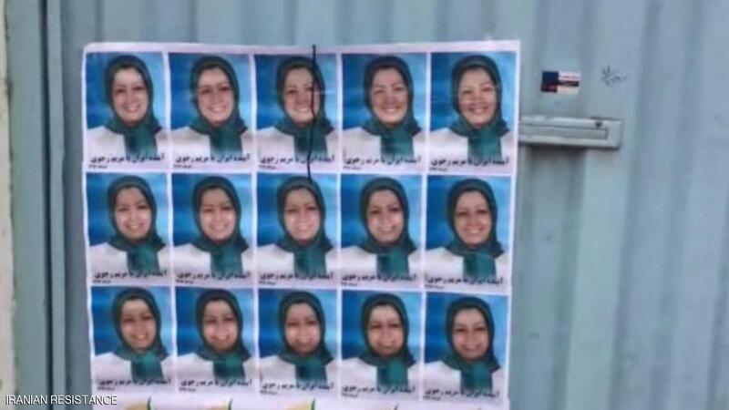 وأظهرت صور أرفقت بالبيان ملصقات تحمل صور مسعود ومريم رجوي على جدران عدد من شوارع المدن الإيرانية، مصحوبة بشعرات "خيارنا مريم رجوي"، و"الحرية والمساواة مع مريم رجوي".