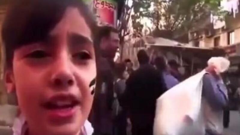 كانت الطفلة تنشد أغنية أمام الكاميرا في الشارع لكنها لم تتمكن من إكمالها بسبب ما قيل انها قذيفة سقطت خلفها وأحدثت دماراً هائلاً وفوضى عارمة في المكان.