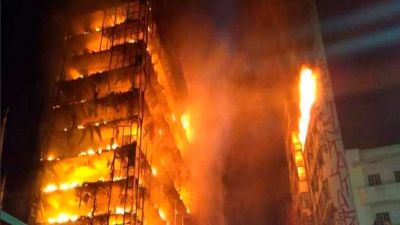 انهار مبنى سكني يضم أكثر من 26 طابقا في مدينة ساو باولو في البرازيل الثلاثاء بعد اندلاع حريق فيه.