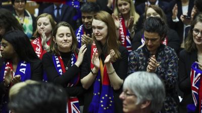 ورفع نواب العلمين البريطاني والأوروبي، فيما التقطت الكاميرات لحظات مؤثرة وبكاء عدد من الأعضاء.