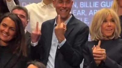 فيديو: زوجة الرئيس الفرنسي ترفع الأصبع مع الجميع