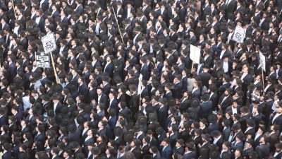 دهست حافلة مجموعة من الحريديم أثناء مشاركتهم في مظاهرة مناهِضة للتجنيد الإجباري في القدس المحتلة، في حادثة وُصفت بالجنائية.