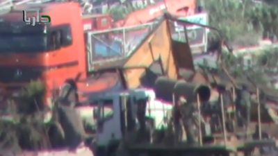 في الغضون وزع ناشطون على مواقع التواصل الاجتماعي فلما قالو انه يبين تورط النظام السوري باطلاق الصوارع الكيماوية على الغوطتين.