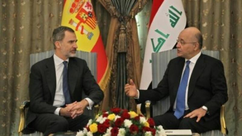 وبعيد ذلك، التقى فيليبي السادس الرئيس العراقي برهم صالح، بعدما أعلنت بغداد نهاية العام 2017 دحر تنظيم الدولة الإسلامية، رغم استمرار القوات العراقية وقوات التحالف الدولي الذي تقوده الولايات المتحدة بشن ضربات ضد الجهاديين.