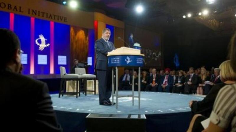 الرئيس مرسي متحدثا في مبادرة كلينتون الدولية في نيويورك الثلاثاء