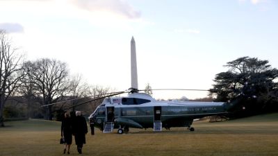 وألقى ترامب قبل الصعود إلى متن المروحية كلمة قصيرة وصف فيها ولايته بأنها "أكبر شرف لحياته"، وتمنى ألا يكون وداعه للبيت الأبيض لفترة طويلة.