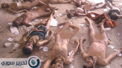وذكرت صفحة "تحرير سوري" التي نشرت الصور أن مكان وتاريخ الصورة مجهولان، كاشفة أن من قام بتصوير جثث الضحايا هو عنصر منشق عن مخابرات النظام السوري.