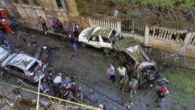 صورة من الانفجار الذي اودى بحياة رئيس شعبة المعلومات في قوى الامن الداخلي وسام الحسن/ارشيف