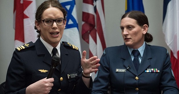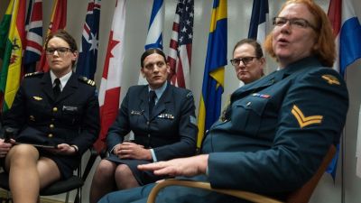 عسكريون متحولون جنسيا من السويد ونيوزيلندا والنمسا وكندا خلال فعالية في واشنطن حول الجنود المتحولين جنسيا.