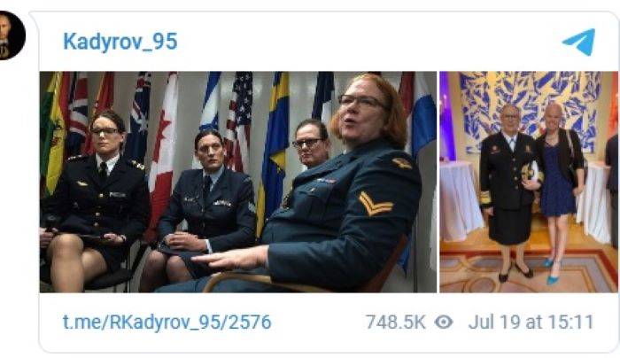 ونشر قديروف على قناته في تيليغرام صورا لمتحولين جنسيا بين قيادات الحلف الذي يدعم الجيش الاوكراني في القتال ضد الجيش الروسي، وكتب معلقا : "ها هم جنود الناتو! نشعر بالقرف من قتالهم".