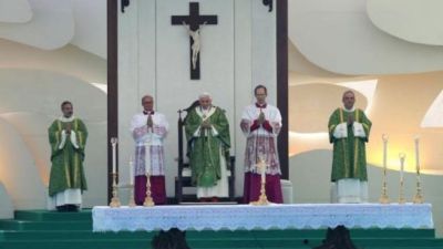 وقال البابا في قداس حاشد عند الواجهة البحرية لبيروت "فليمنح الله بلادكم (لبنان) وسوريا والشرق الاوسط هبة السلام في القلوب وصمت السلاح ووقف كل اشكال العنف".