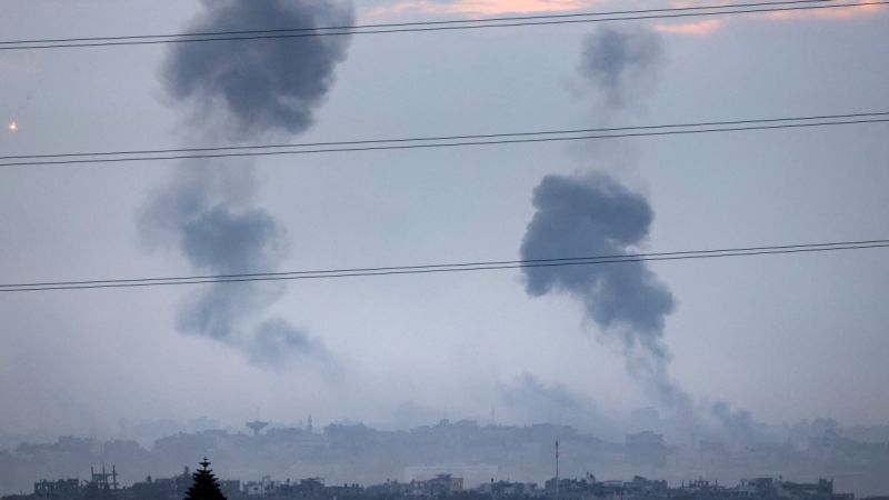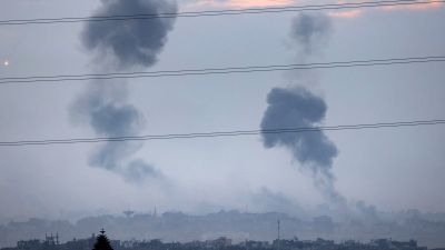 ارتفاع أعمدة الدخان من قطاع غزة بعد قصف إسرائيلي. 11 تشرين الثاني، 2023م. وكالة الصحافة الفرنسية.