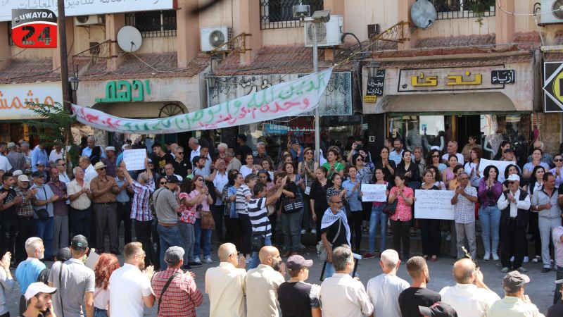 قوات الاسد تفتح النار على اهالي السويداء المحتجين امام مقر البعث