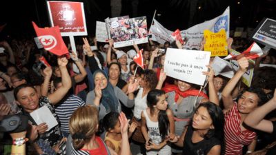 واتهم المتظاهرون في مسيرات كبرى وسط العاصمة وأخرى بمحافظتي صفاقس والمنستير حكومة تونس وبشكل خاص حركة النهضة الإسلامية بالتراجع عن مكتسبات المرأة التونسية التي حققتها طيلة العقود الماضية والتحضير لمشروع مجتمعي رجعي.