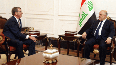 وكان كارتر قال للصحافيين على متن الطائرة العسكرية في طريقه الى بغداد “سابحث مع رئيس الوزراء العبادي وقادتنا هناك في المراحل المقبلة من الحملة التي تتضمن سقوط الموصل والسيطرة عليها”.