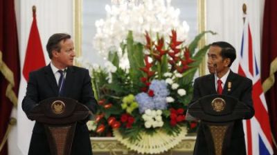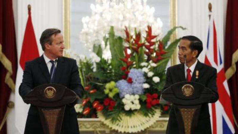 رئيس الوزراء البريطاني ديفيد كاميرون (يسارا) ورئيس اندونيسيا جوكو ويدودو
