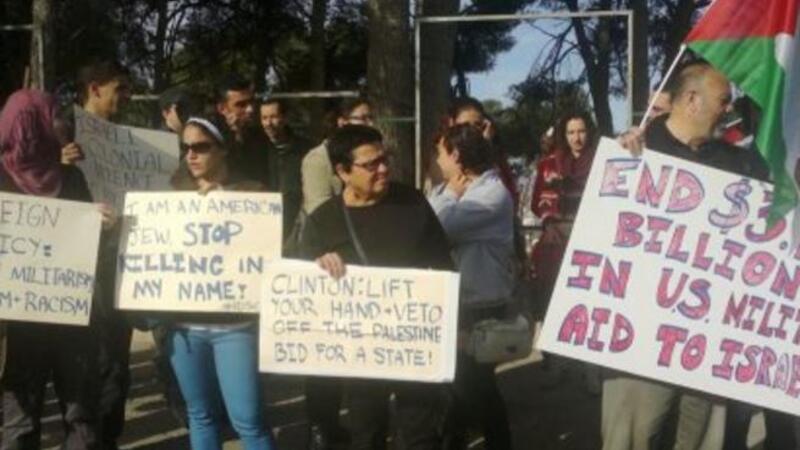 مظاهرات ضد تواجد كلينتون في فلسطين